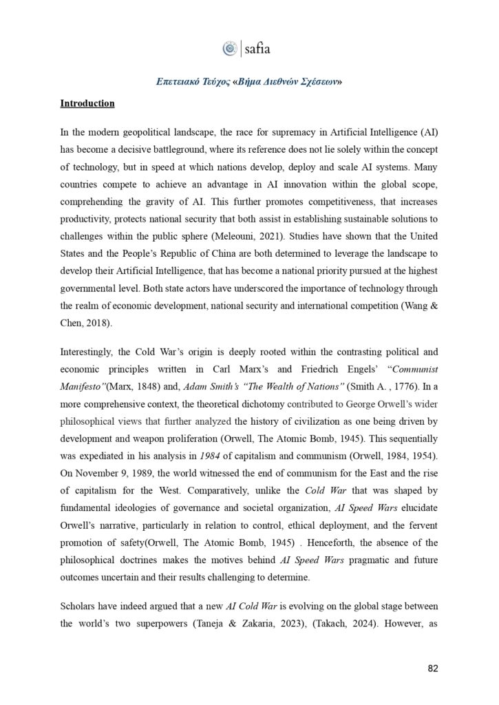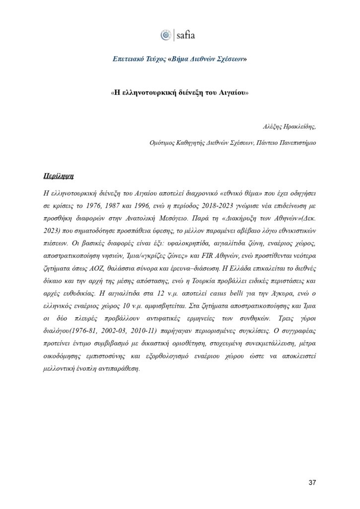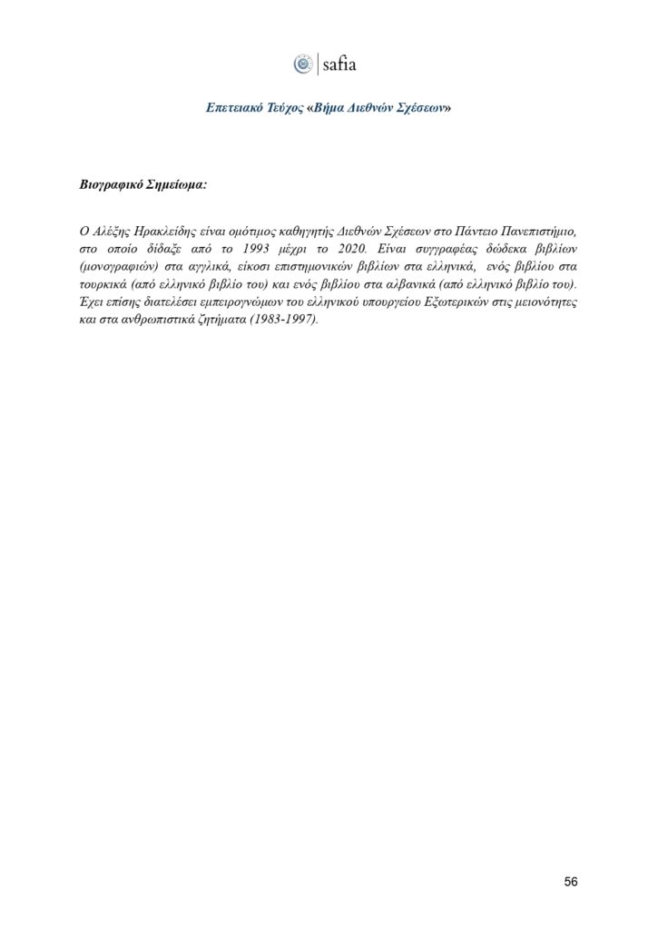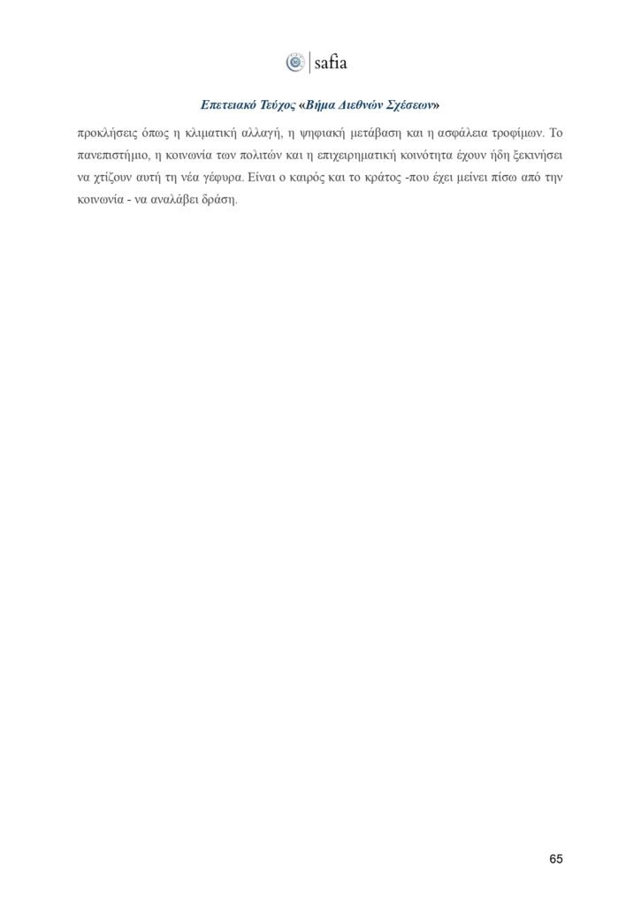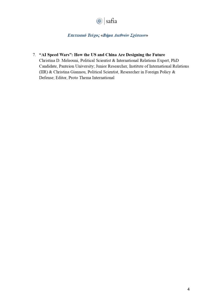 Στο πλαίσιο αυτής της ιστορικής επετείου, έχουμε τη χαρά να παρουσιάσουμε το επετειακό τεύχος του «Βήματος Διεθνών Σχέσεων». Μια επιστημονική έκδοση που φιλοξενεί κείμενα έγκριτων ακαδημαϊκών, αναδεικνύοντας καίριες θεματικές της διεθνούς πολιτικής, με στόχο να εμπλουτίσει τον δημόσιο διάλογο και να ενδυναμώσει τη φωνή των νέων ερευνητών.