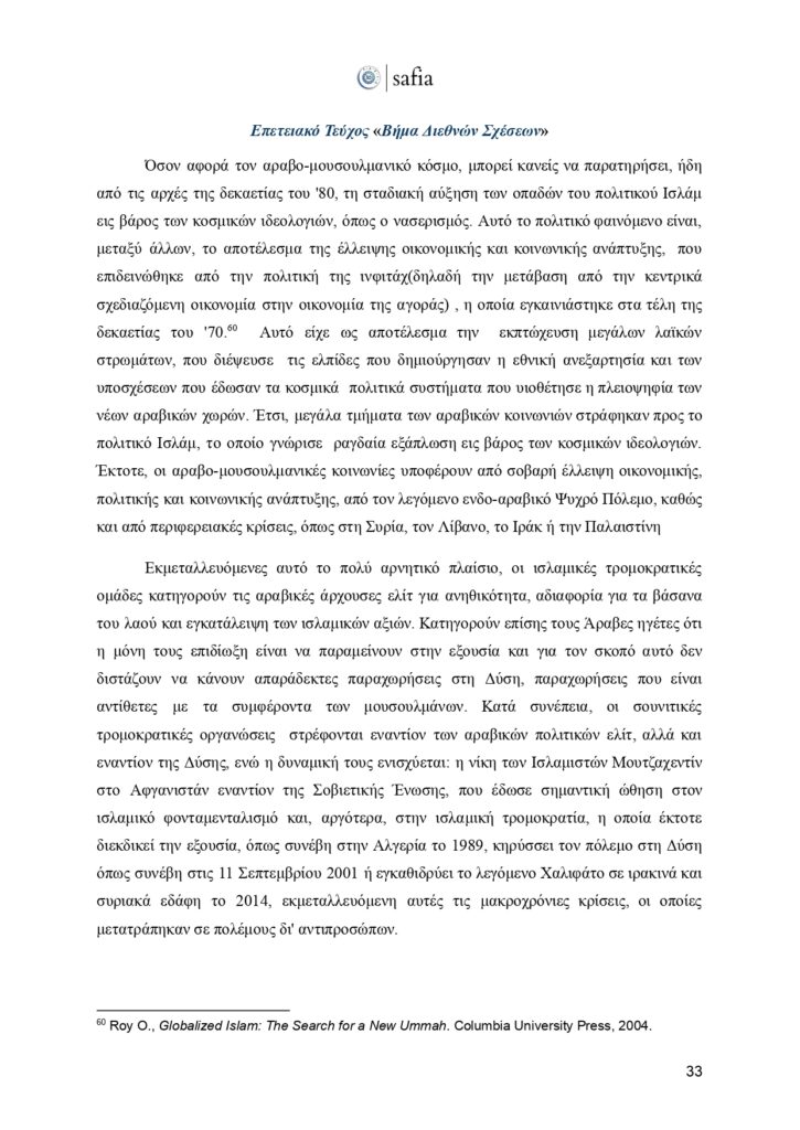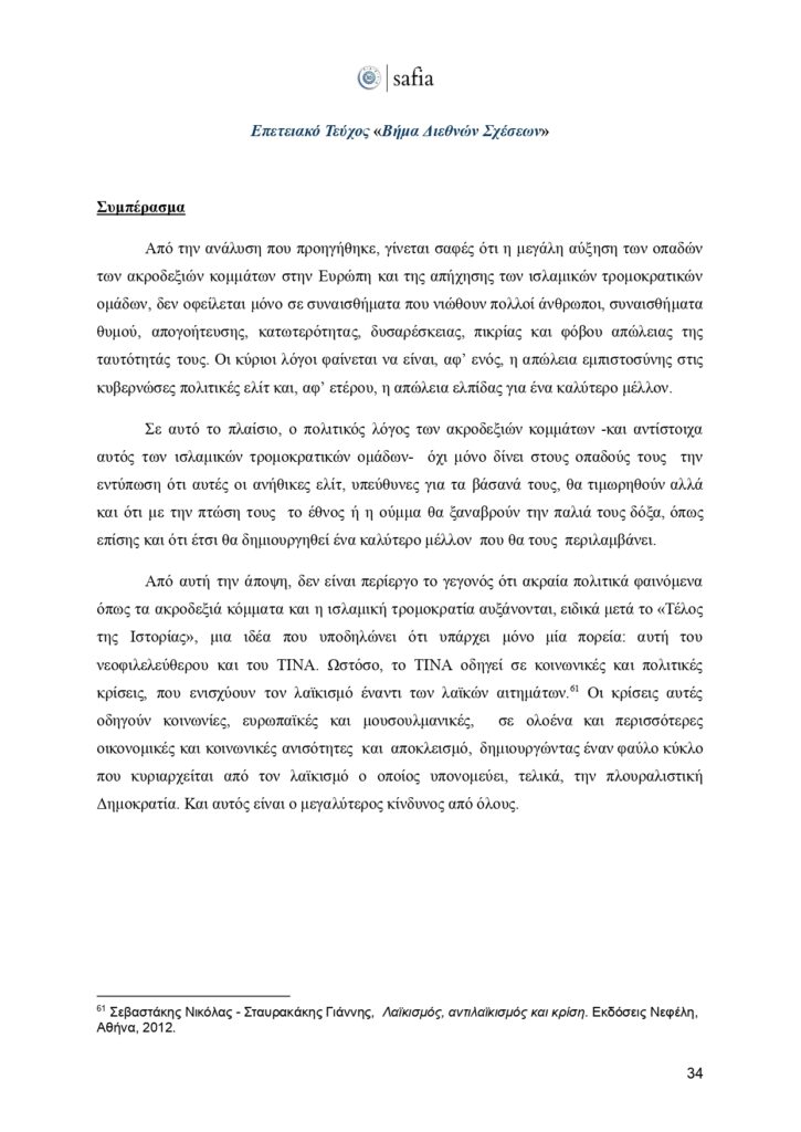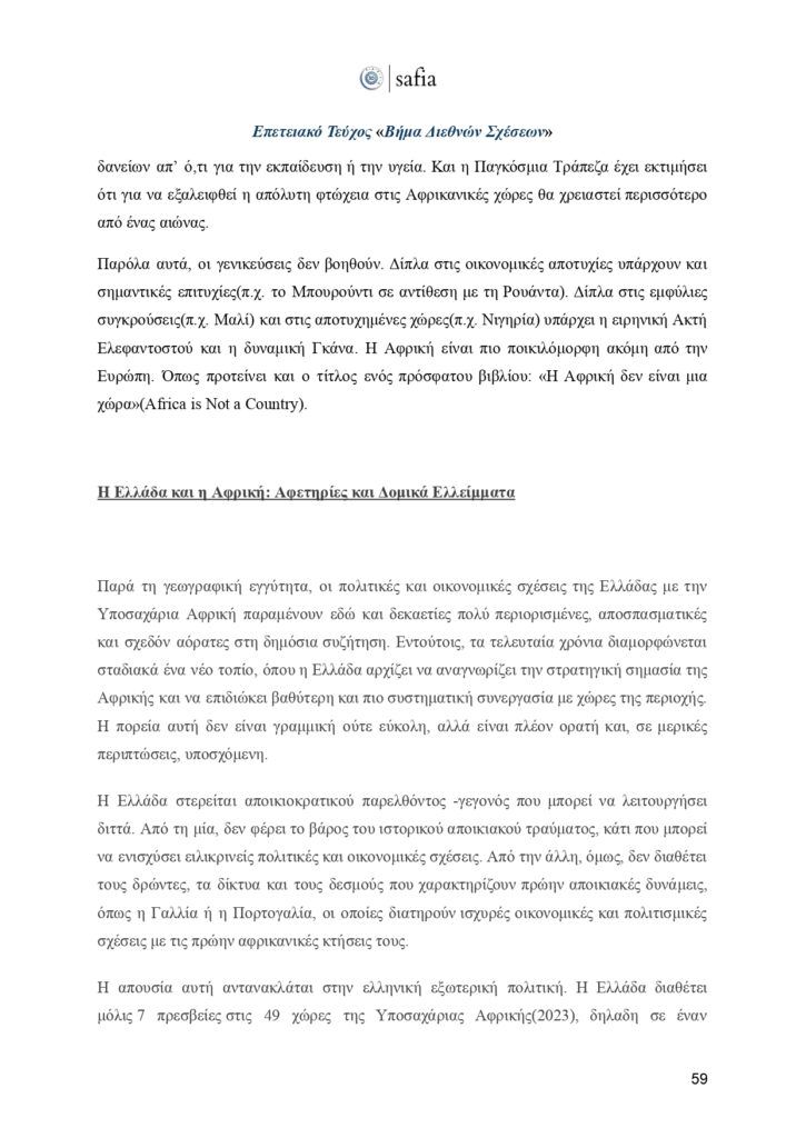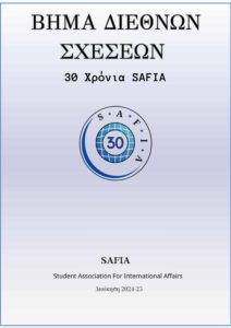 Η SAFIA-Student Association for International Affairs συμπληρώνει πλέον τρεις δεκαετίες συνεχούς παρουσίας και δημιουργικής δράσης στον χώρο των διεθνών σχέσεων. Τριάντα χρόνια γεμάτα από σεμινάρια, ημερίδες, αποστολές στο εξωτερικό, Ομάδες Έρευνας και Συνεντεύξεων, το Πανελλήνιο Κοινοβούλιο Νέων και πλήθος πρωτοβουλιών που σφράγισαν τη φοιτητική και επιστημονική κοινότητα στην Ελλάδα. Μέσα σε δύσκολους καιρούς, με συνεχείς προκλήσεις στην παγκόσμια σκηνή αλλά και στην κοινωνία μας, η SAFIA παραμένει ζωντανή, εξελίσσεται και προσαρμόζεται, κρατώντας πάντα αναλλοίωτο τον σκοπό της: Να προσφέρει έναν χώρο γνώσης, διαλόγου και καλλιέργειας κριτικής σκέψης.